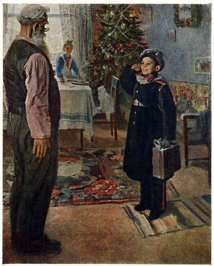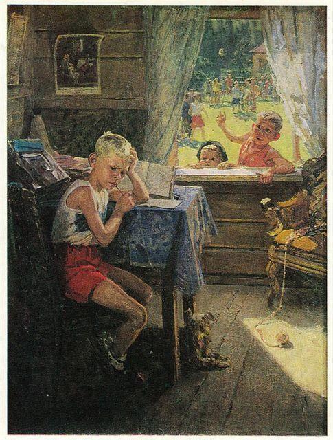 Картина "Прибыл на каникулы" была "притянута за уши" по требованию худсоветов по идеологическим мотивам, а задуманный художником триптих должен был состоять из таких картин: