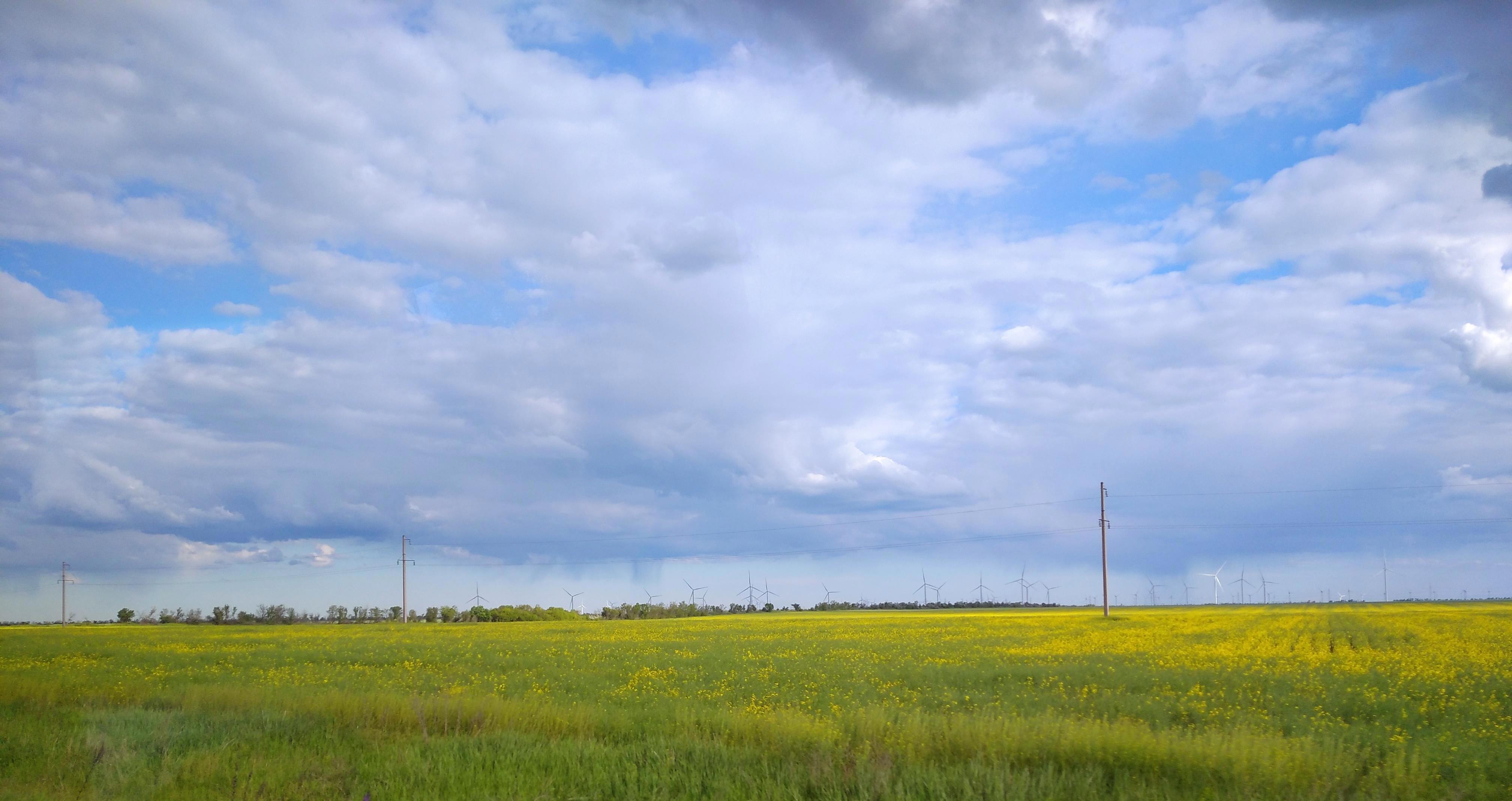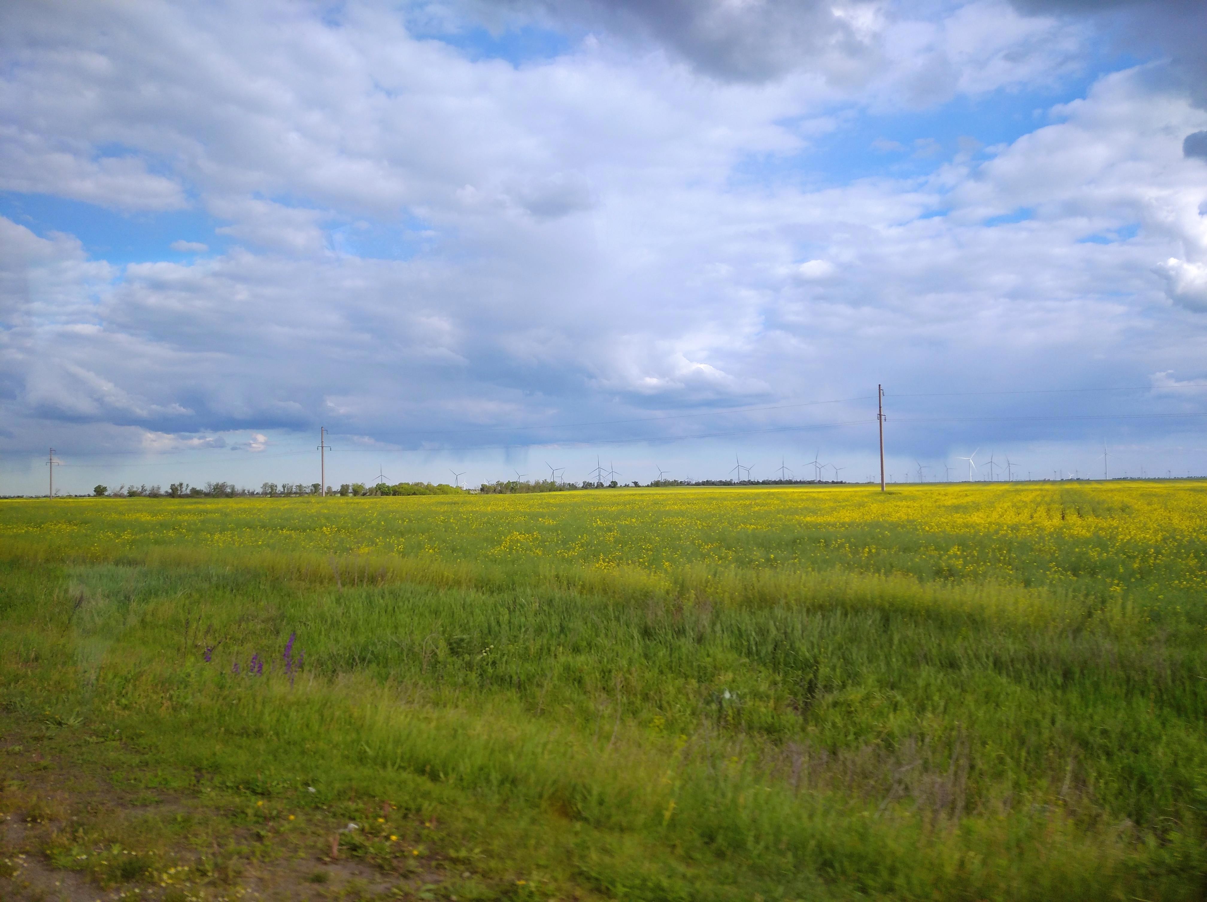 В субботу была в поездке. Когда возвращалась домой, смотрела на горизонт, виднеющийся в окне "спринтера". Где-то там, ближе к морю, шел дождь. Признаться честно, интересно выглядят дождевые облака со стороны, будто их края смазаны кистью.