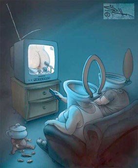 Да, нет, всего лишь один из мощных рычагов власти, через подконтрольные ей СМИ. Оказывать давление через ТВ – действенный способ управлять сознанием народного большинства. Страшилки тотальных катастроф, злостное смакование действительности под марку демократических свобод и прочие мозгодробящие способы из арсенала сегодняшнего ТВ, как выясняется, оказывает реальное воздействие на волю обывателя. И тем легче управлять запуганной, безвольной и извращённой гадкими подробностями человеческой массой. Сладкая пилюля, способная снять рвотные позывы для особо впечатлительных, состряпана из весёленького сериального телемыла с закадровым смехом, бодреньких ментовских боевичков и запредельно тупых мелодрам.