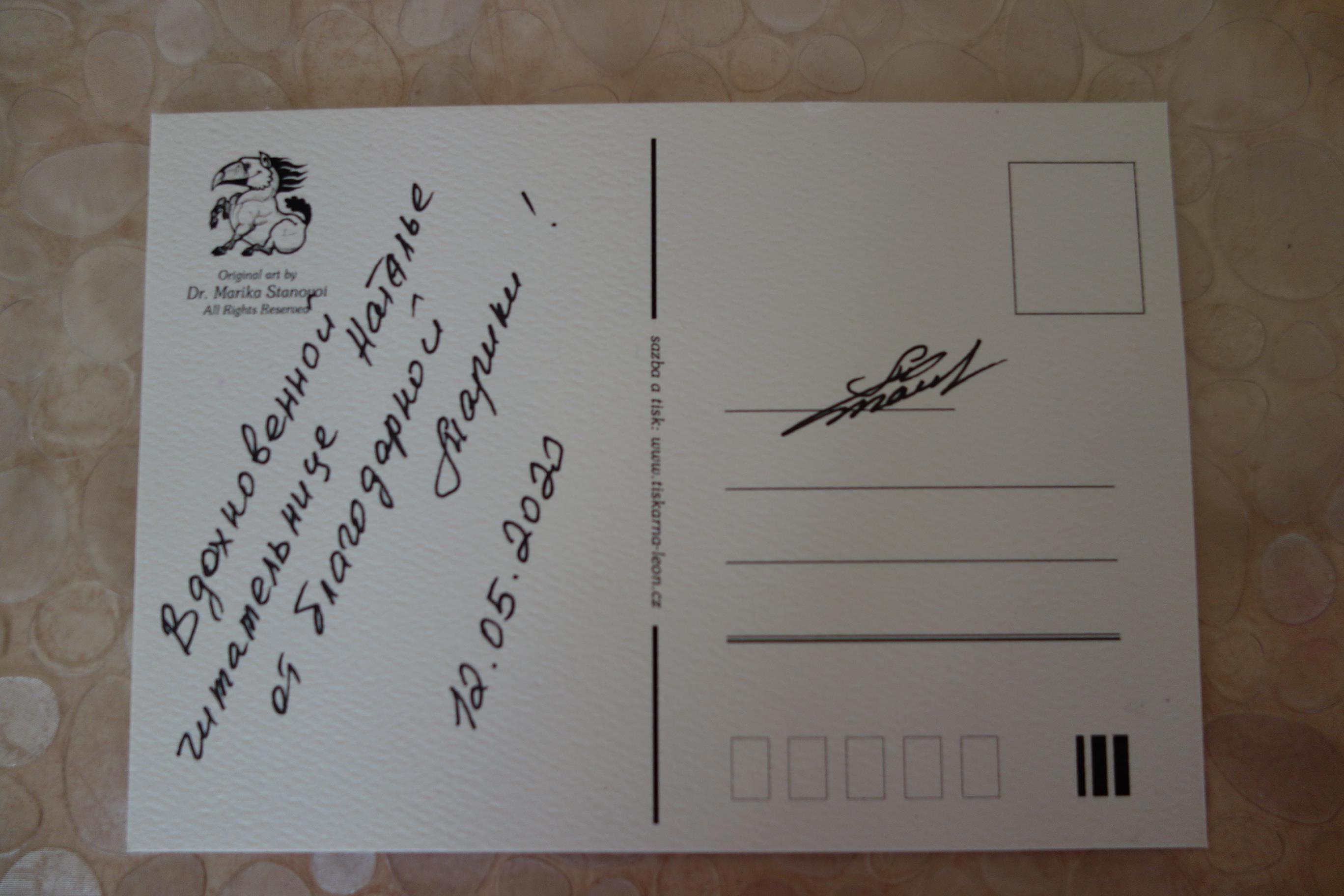 А тут Марика, мало того, что связала мне игрушку-собачку, похожую на мою овчарку, так еще и открытки с иллюстрациями к Экзекутору приложила, которые также сама нарисовала! Воистину, талантливый человек талантлив во всем: и писатель, и художник, и рукодельница, и врач-ветеринар, и, наверное, еще кто-то, кто мы не знаем)))
