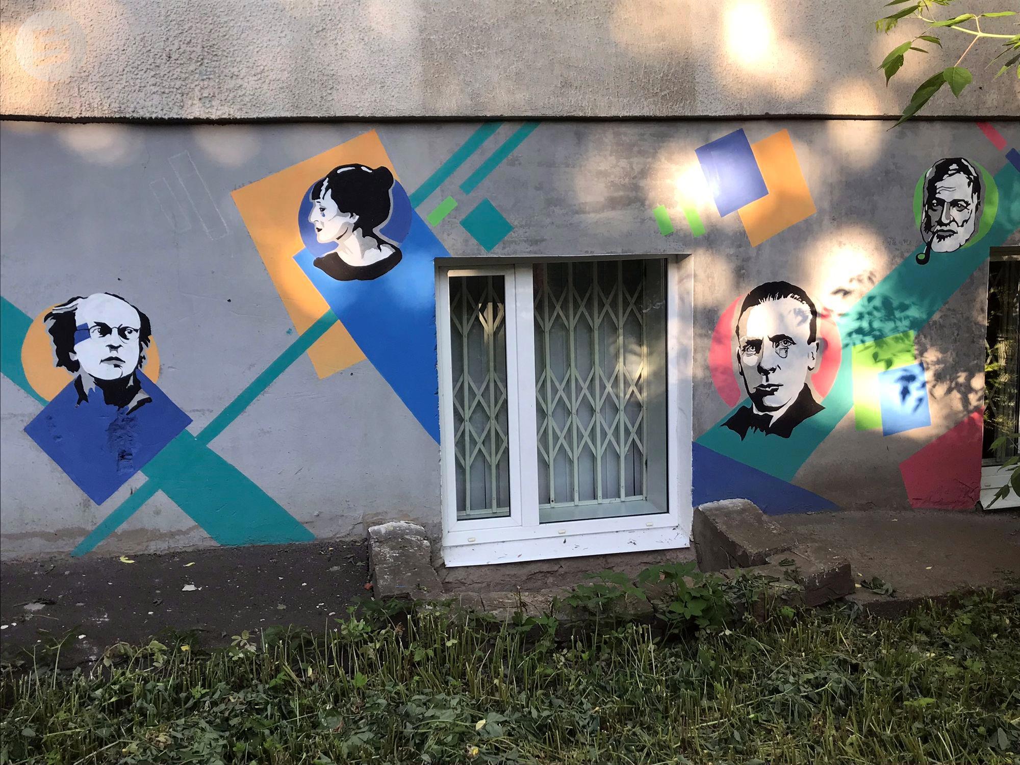 стену портретами писателей украсила в 2019 году сотрудница библиотеки Ольга Корепанова