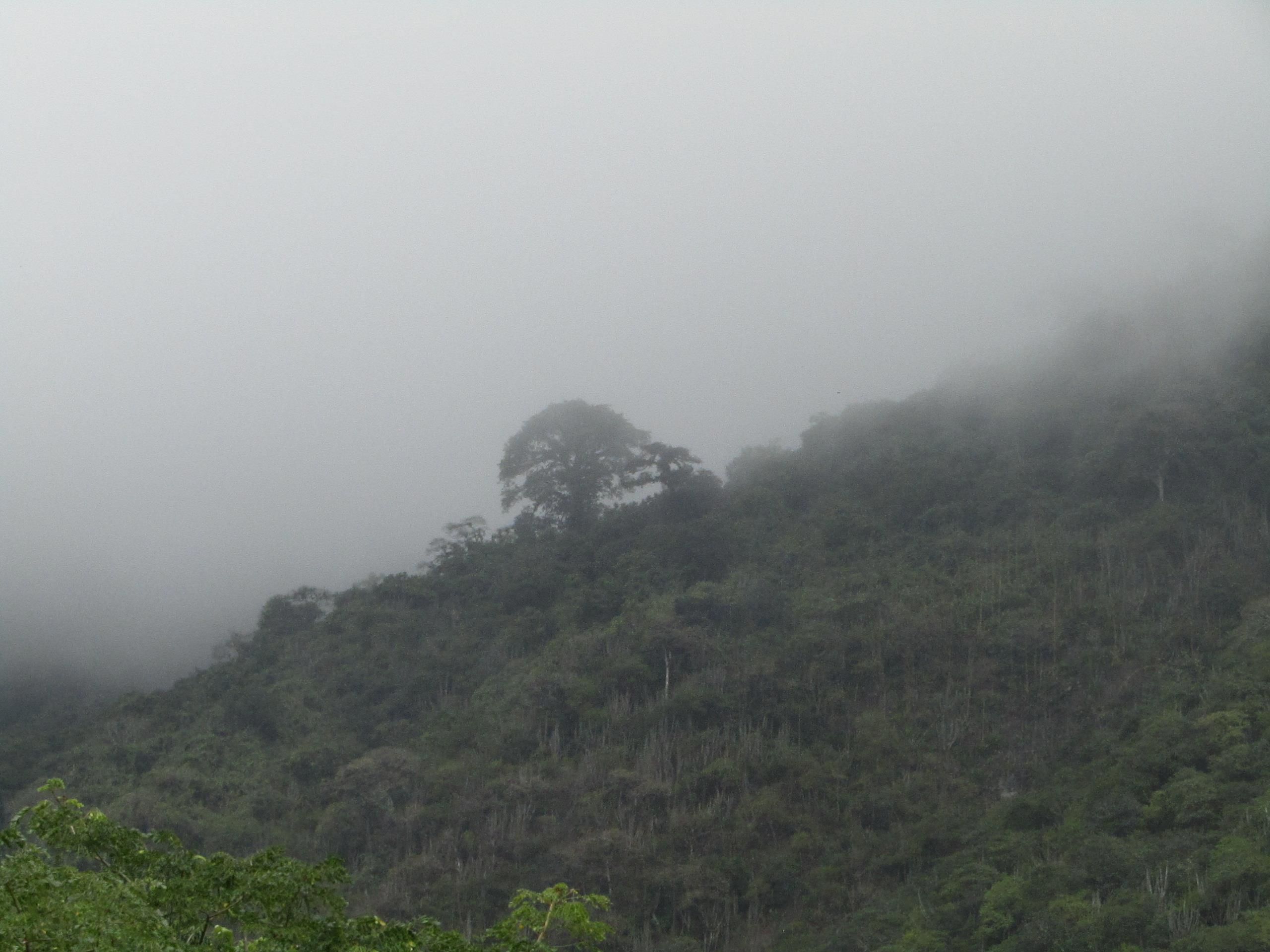 На самом деле просто облако примостилось на вершине горы. Ну и дерево зачетное, конечно. :)