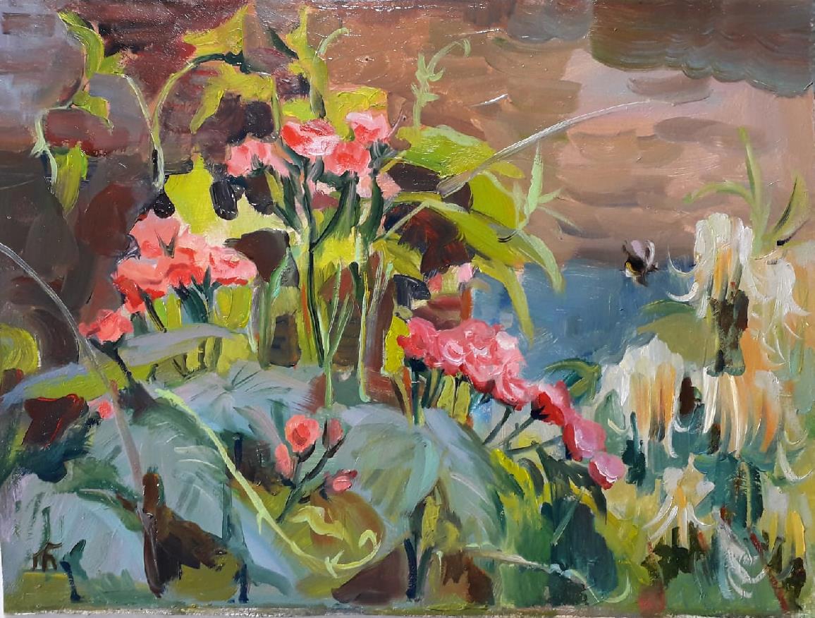 Автор: Любава БлагодарнаяСегодня снова набросала этюд на нашем участке, приятно пахло скошенной травой, а точнее уже сеном, в котором бегают ящерки. В небе погромыхивало, то набегали тучи, то снова становилось жарко. А результат вот таков.