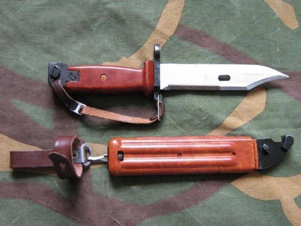 Данный инструмент разрабатывался исходя из его назначение и области применения. От штык-ножа требуется не только функция "штык", но и утилитарные функции: перерезать проволочное заграждение, открыть банку тушенки и пр.пр.пр. Соответственно это накладывает отпечаток на его конструкцию. Итак, если вы пишите про штык нож, используемый в РА, то выглядит он так:
