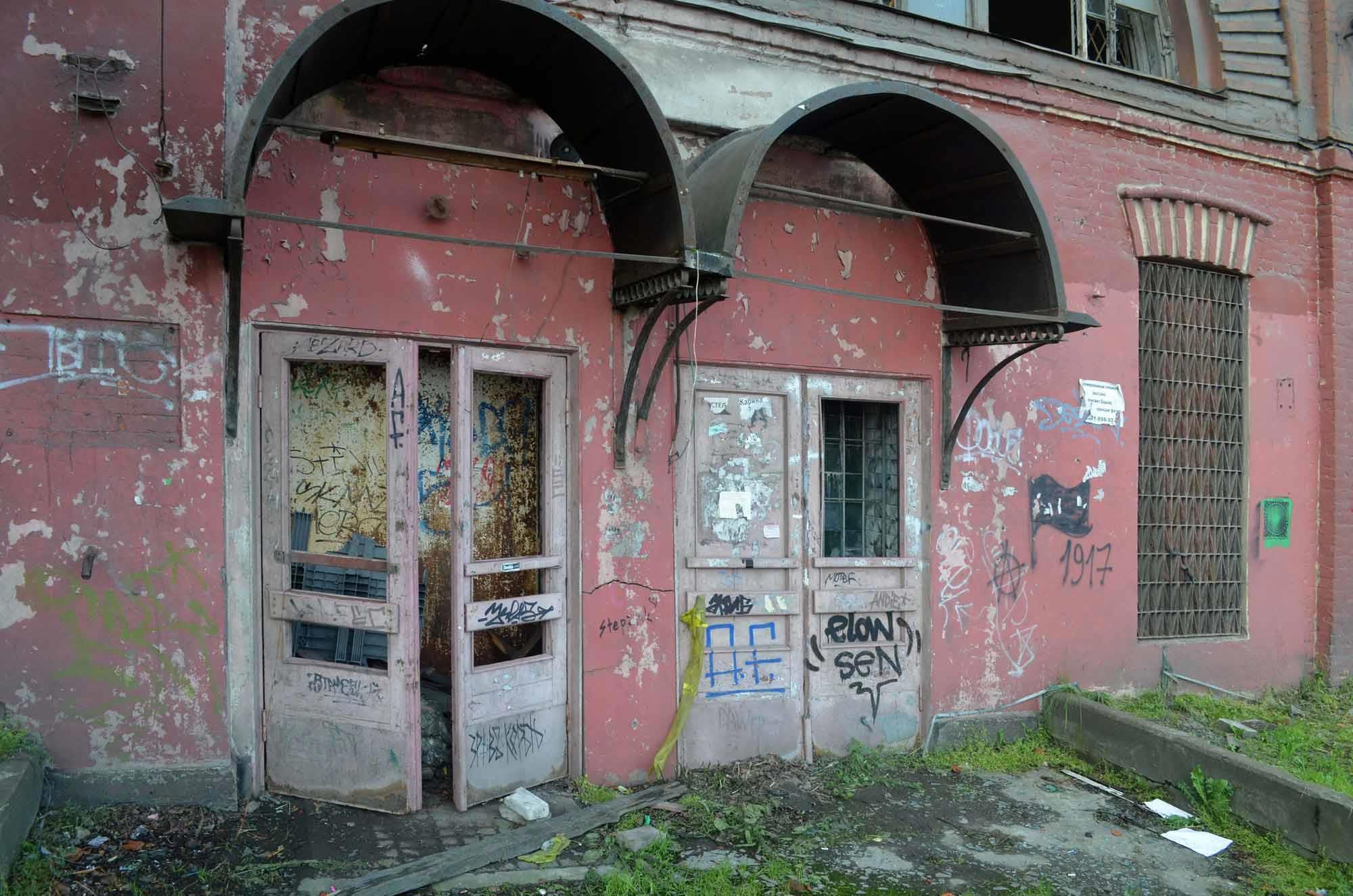 Дальше мы пошли по Обводному и в одном месте нашли ещё подворотню, но уже закрытую. Сфотографировали через щёлочку: