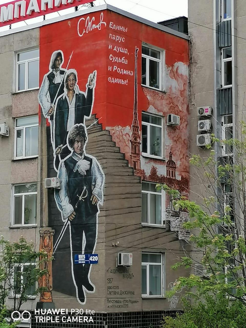 А вот следующие граффити родились во время проведения фестиваля художественных фильмов "Утро Родины". Вы себе даже не представляете насколько они украсили город!