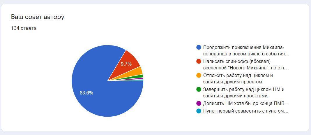 С 28 июня идет голосование читателей относительно перспектив цикла "Новый Михаил" и пожеланий автору. По состоянию на утро 4 июля имеем такие цифры.