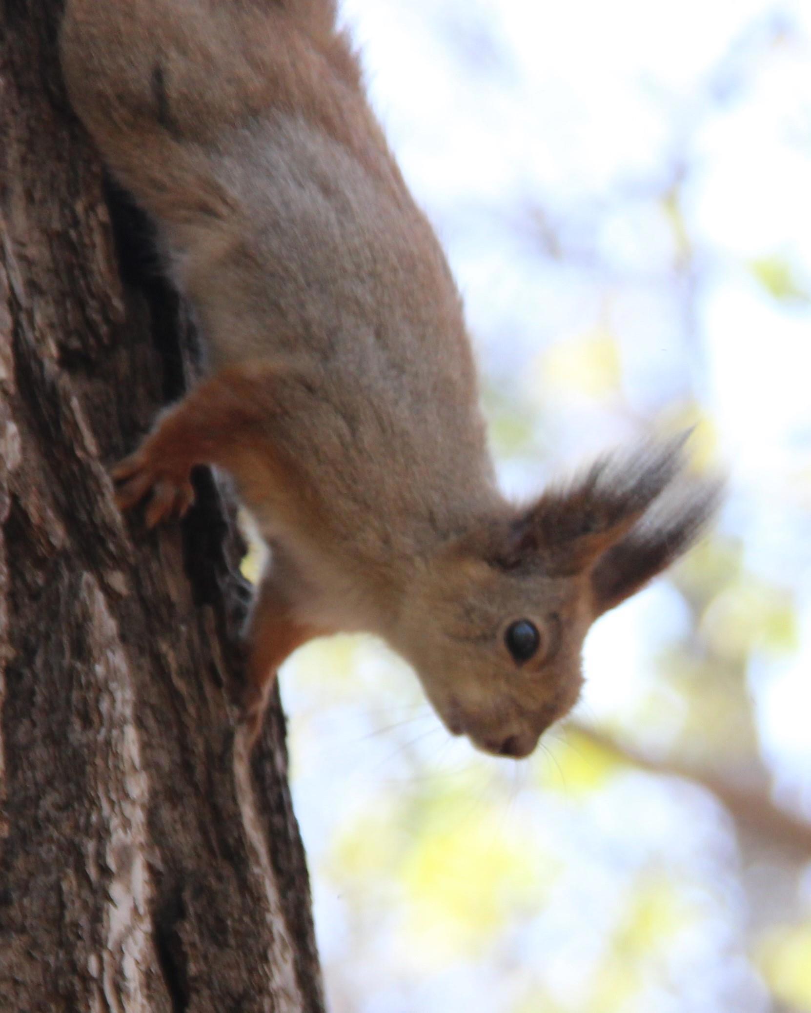 Обнести куст лещины, растущий прямо во дворе? Запросто! (И пусть местный пес захлебывается бессильным лаем - белка отлично знает, что он на цепи).
