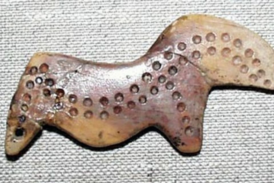 Ещё одна картинка. На мой взгляд интересная. В захоронении было найдено много всяких предметов. Вся одежда усопших была расшита бусами из кости мамонта (они сверлить умели и делала это - девчонка или младший из мальчиков). А ещё была фигурка животного. Учёные говорят, что это "лошадка"... хм... ну, не знаю: