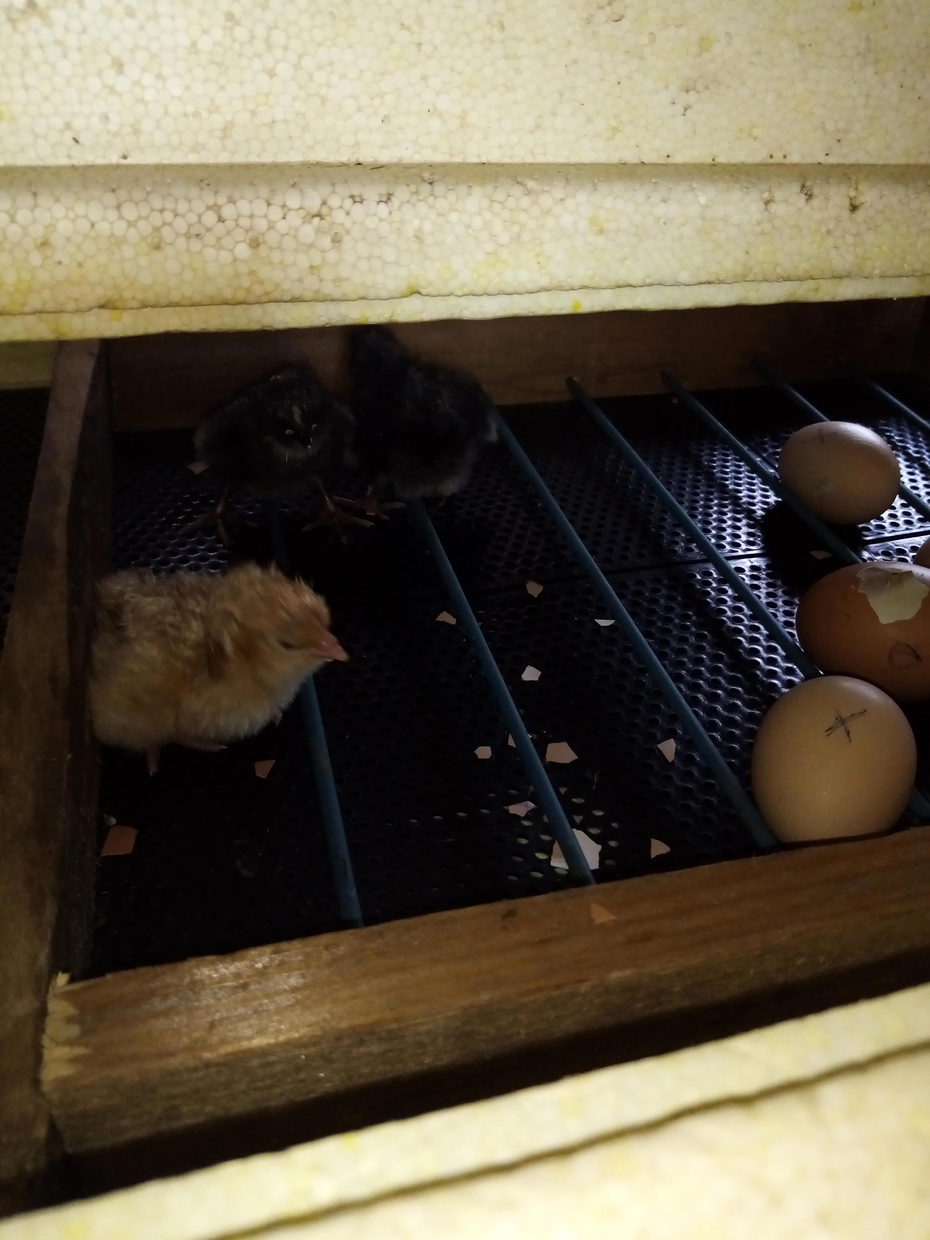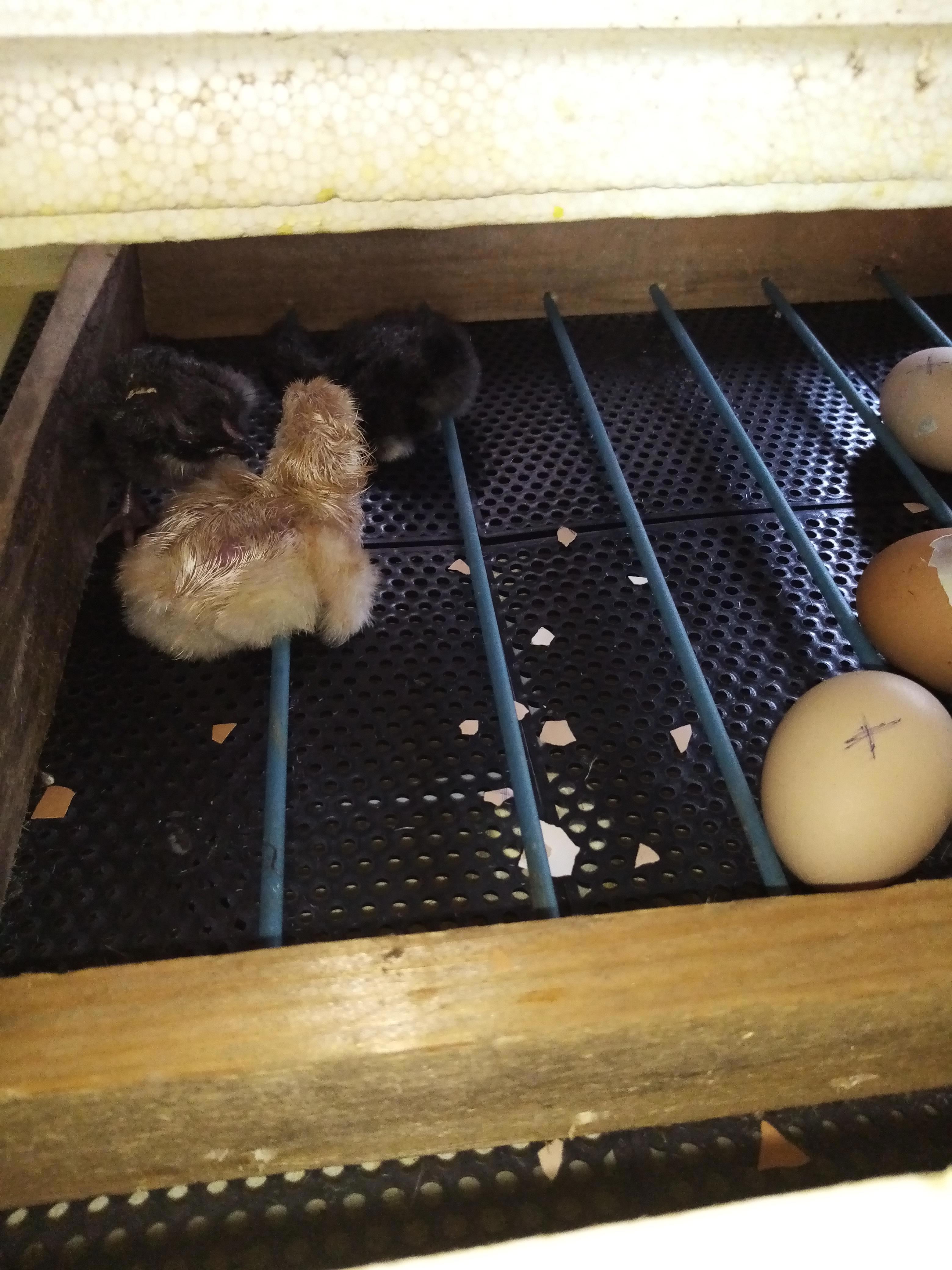 Прошел 21 день,как в инкубатор заложил куриные яйца. И сегодня стали вылупляться цыплята. Из 10 яиц скорее всего вылупится 6 цыплят. Трое уже бегают, а трое клюют скорлупу и пытаются вылезти. Всю ночь наверное будут вылазить из домиков)))