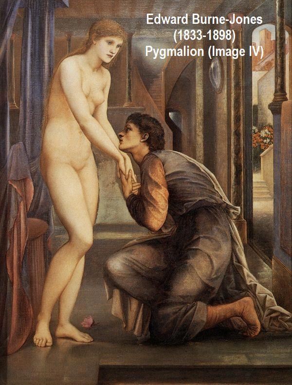 Можно нарисовать картину. Например так, как это сделал Берн-Джонс в своей картине: «Пигмалион и Галатея». Он долго переписывал эту картину и нынче, кроме многочисленных эскизов, хранятся два варианты, тут приведен второй.