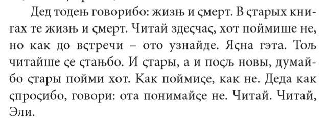 Сходные чувства испытывает герой этих глав, Эли, читая старые книги, вывезенные с Теры: