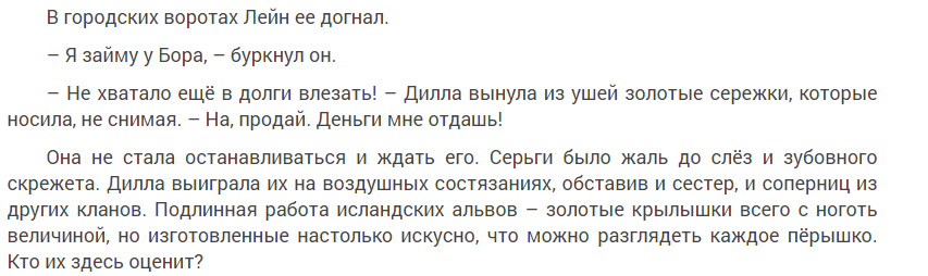 При этом фольклорные элементы умудряются балансировать на той тонкой грани, когда они уместны и придают атмосферности, а не превращаются в пафосные завывания и лишние украшательства. Автор отлично знает материал, она не лепит его куда не попадя, и вплетает уместно. Даже если по необразованности своей мало что знаешь сам, ты все еще понимаешь логику мира.