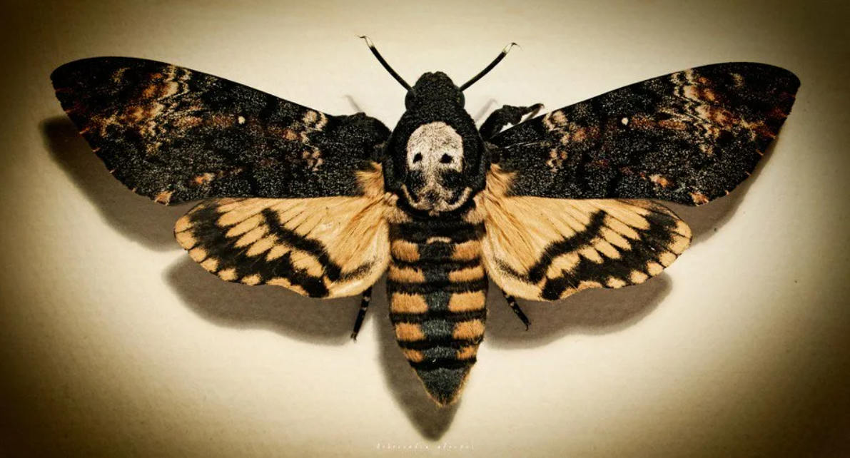 Бражник мертвая голова - та самая пухленькая симпатяга, которую вы видите на обложке прямо у Генриха над головой. Если побольше, то вот так выглядит эта красота.
