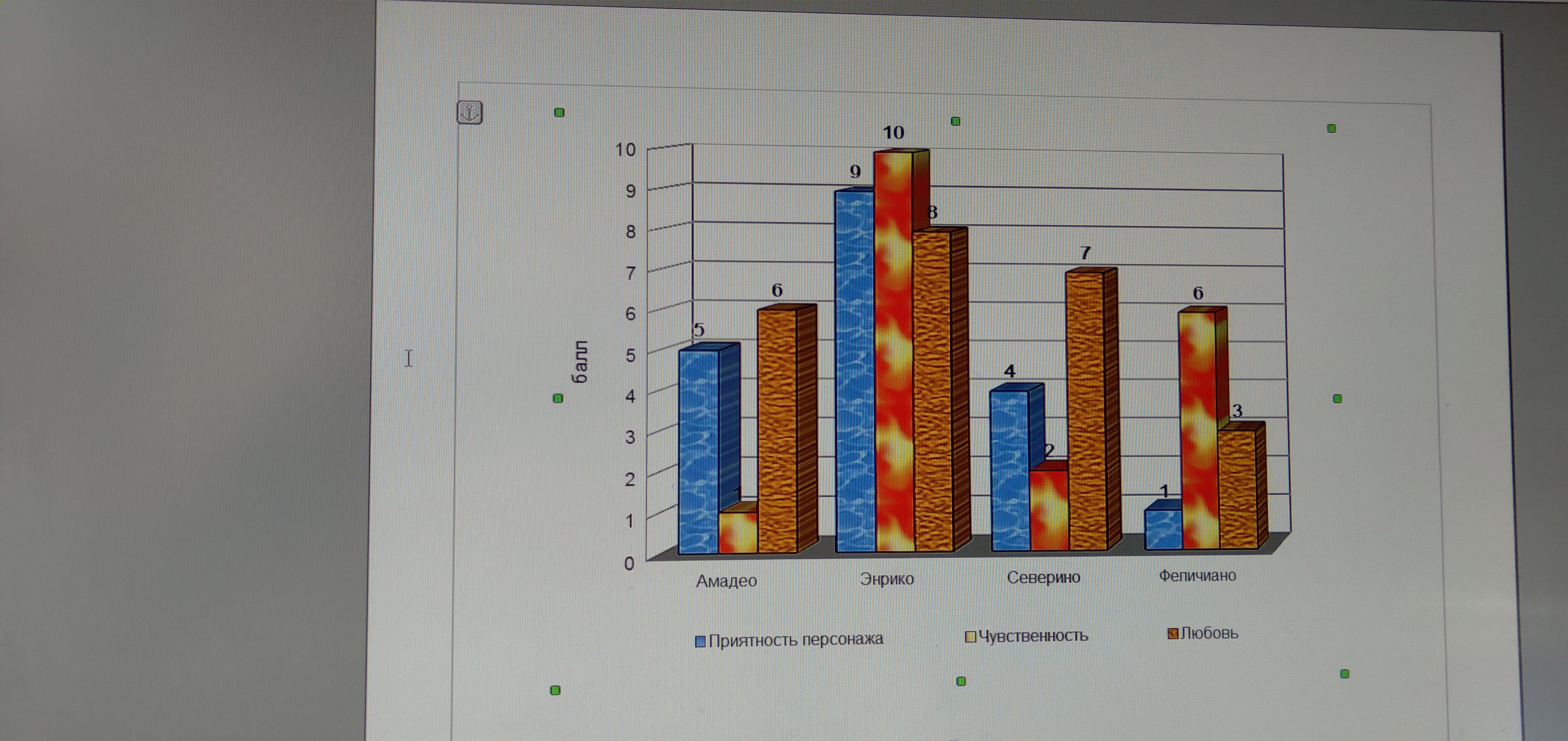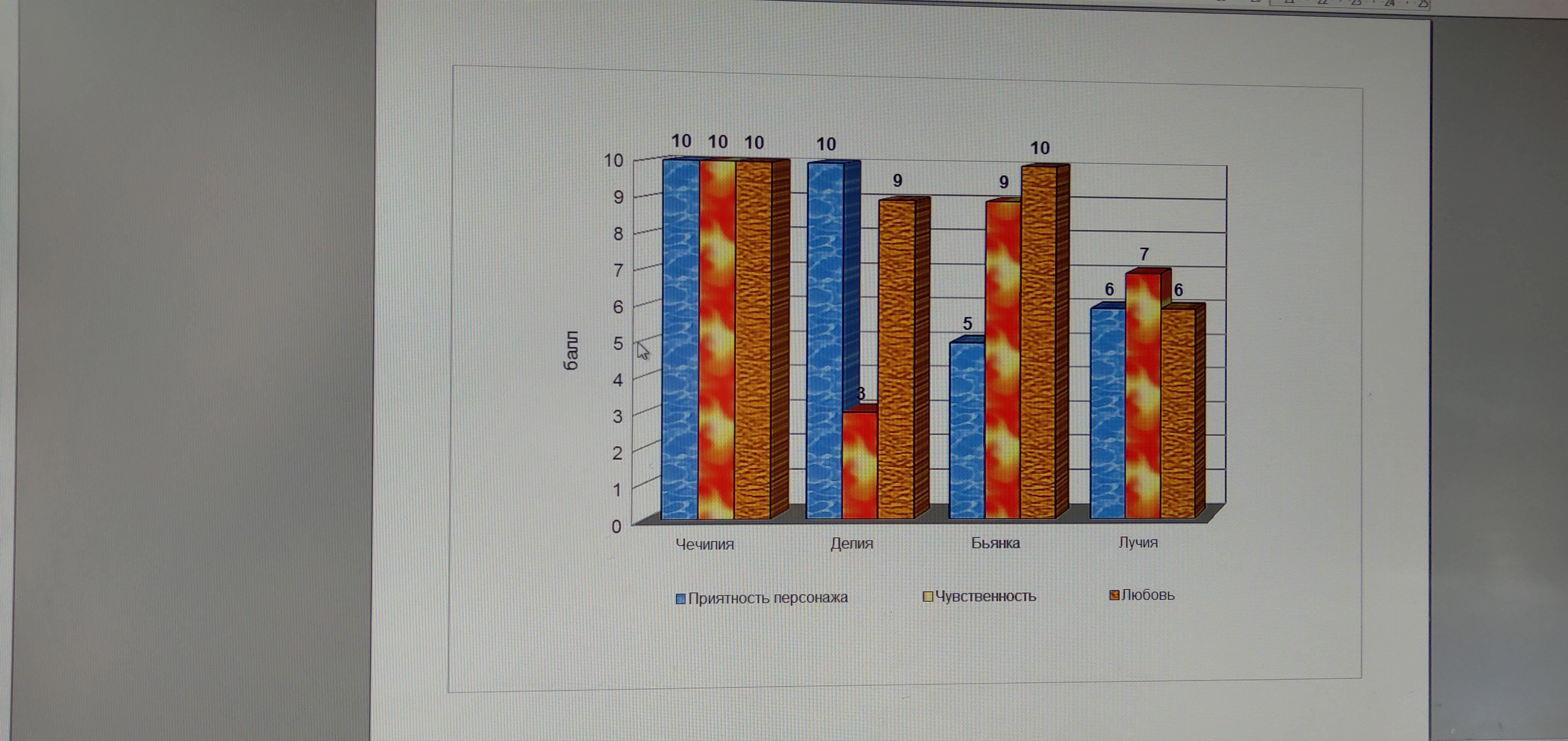 Итог: чувственность — 10 баллов, любовь — 10 баллов, приятность персонажа —10 баллов.