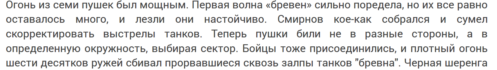 И тут же через пяток абзацев снова танки. Они похоже народились все семь штук сразу. Снова заговорили танковые пушки.