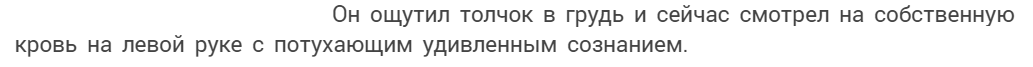 Помимо государственной программы для детей киллеров, курируемой ФСБ, выясняются другие немаловажные подробности, а именно: теперь сознание Игоря совмещено с сознанием другого человека – профессионального военного, и действие перемещается в параллельную вселенную. А может, уже происходит в ней – тут я немного недопонял по причине невнимательности, мне на нее многие пеняют. Ах да, чуть не забыл: еще в голову Игоря вживлен чип с ИИ неизвестного происхождения – это тоже выясняется. И невесть откуда взявшиеся био-наниты кровь очищают и раны заживляют.