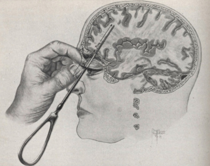 Начало ориентировочного изучения на примере трансорбитальной лоботомии