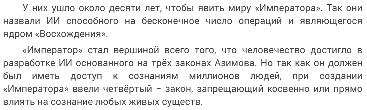 Если кто не понял — ИИ смог найти и запустить переживание воспоминаний, когда Уилл выпил какой-то внутриигровой галлюциноген. На кой хрен ИИ дали такую возможность и как он узнаёт, в каких нейронах воспоминания записаны? Это же не просто так делается, в капсуле должен быть механизм, открывающий доступ к подобным манипуляциям. Как это соотносится с четвёртым законом? Да никак.