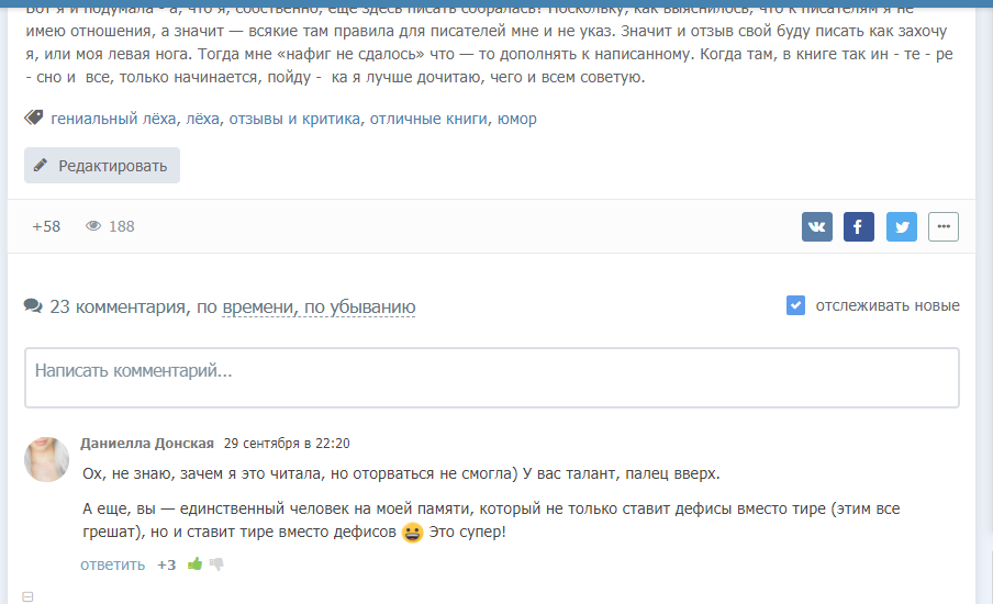 Вот я и подумала — а, что я, собственно, ещё здесь писать собралась? Поскольку, как выяснилось, что к писателям я не имею отношения, а значит, всякие там правила для писателей мне и не указ. Поэтому и отзыв свой буду писать как захочу я, или моя левая нога. Тогда мне «нафиг не сдалось» что-то дополнять к написанному. Когда там, в книге так ин - те - ре - с - но и все, только начинается! Пойду-ка я лучше дочитаю, чего и всем советую.