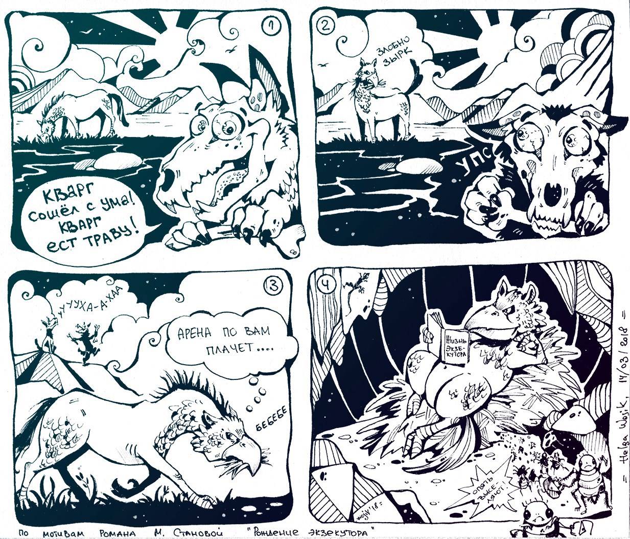Для меня этот роман не был уютным. Он приносил дискомфорт. Чтение было сродни полету на американских горках: вот автор, как Джи сканом, усыпляет пейзажами, сменой локаций, красивыми деталями, а вот крутой вираж - получайте естественную жестокость, страдания и эмоциональные взрывы Крошки. Но вместе с тем, произведение оригинально. Буду ли я перечитать роман? Сложно сказать. Но точно я рада поставить книгу с этой историй на полку, и знать, что вот на этой полтысячи страниц среди пустошей бегают кваржики, а в лесах водятся пугливые синие олени, живут разные народы и всеми ими управляет Джи - правитель, что любит своих подданных, как автор героев, и так же как создатель любит сталкивать их лбами или тихонько тыкать палочкой. Всё что угодно, лишь бы не умереть от скуки. А скучать с этой книгой точно не получится. Однако детям и впечатлительным не рекомендуется, хотя автор предупреждает: не зря 18+ красуется.