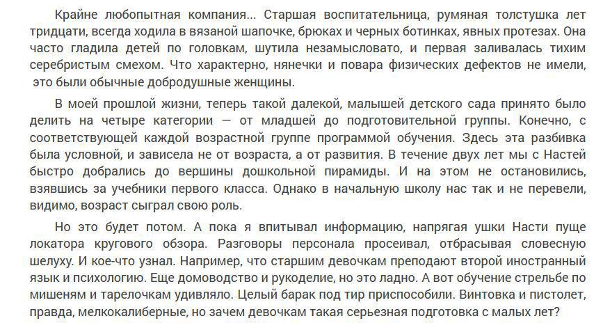 Вторая ненавистная мною фигня — это попадайство да еще в дитёнка, да еще другого пола, да ещё с сохранением сознания реципиента, да еще с внутренним контактом между обоими квартирантами. Ры-ры-ры!