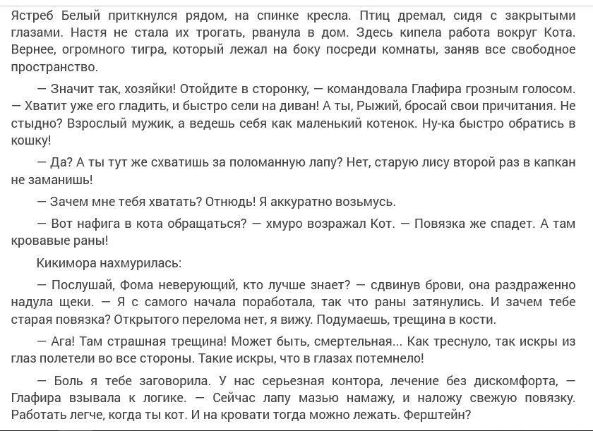 Тут есть моменты, которые я пламенно ненавижу, а именно расширенная, многословная и ходящая кругами, описалка. Прям в первой главе прям раз восемь перессказывается одно и то ж — как герой помер. Вроде бы ну зачем? Сказал раз, сказал два и уже даже самый тупой все понял же ж!! Но вот внезапно меня увлекло. Потому что очень хорошо написано. Душевно прям.