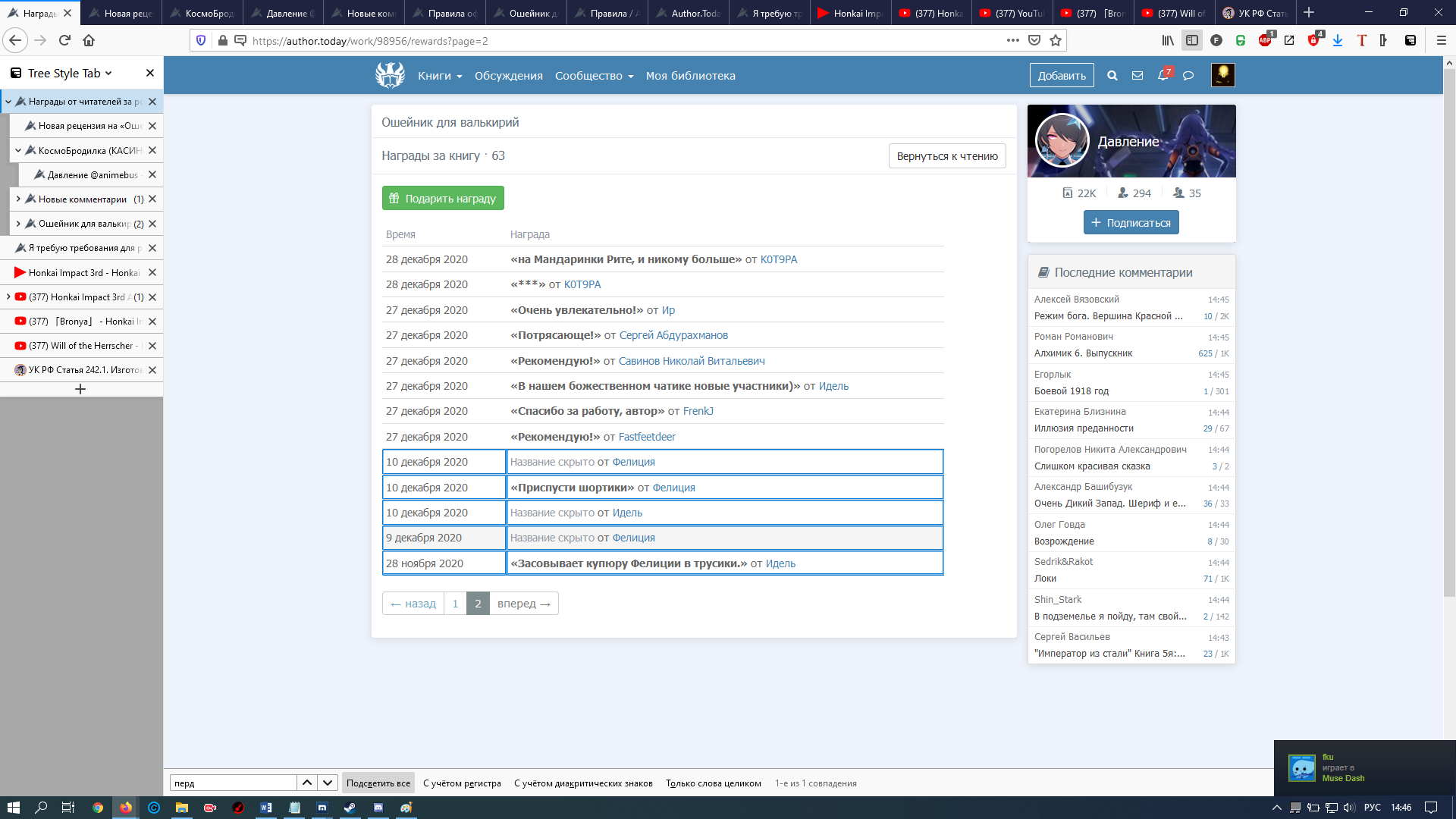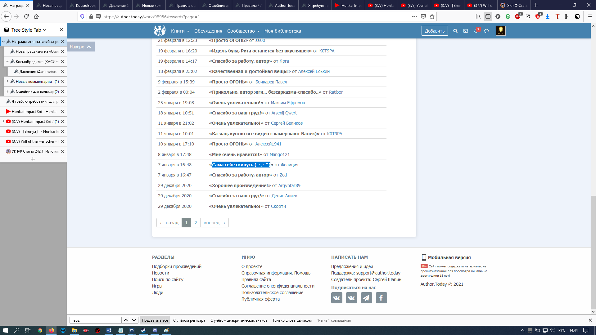 Ну и думаю нужно замолвить слово о фейках автора и накрутке наград.