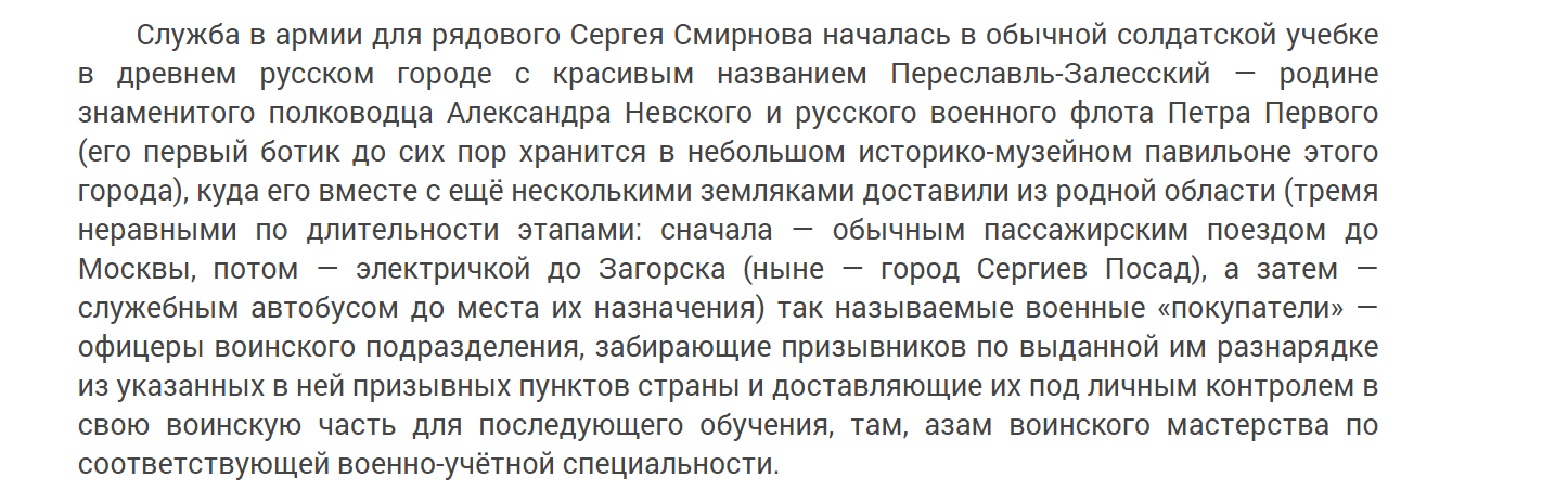 Книга написана от третьего лица и имеет одну сюжетную линию, посвященную жизни главного героя — Сергея Дмитриевича Смирнова.