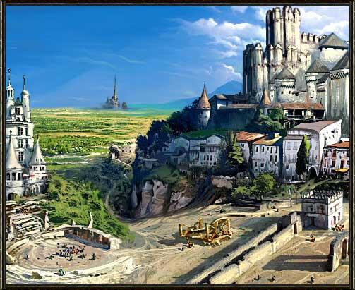 Во-первых, энергетическое поле, управляющее погодой, заодно защищающее от негативных внешних условий. Во-вторых, довольно вольные нравы: тут вам и равные права мужчин и женщин; и хитрое устройство управления государством, когда умных детишек "усыновляет/удочеряет" корона и воспитывает из них будущих управленцев, экономистов и прочих полезных чиновников; и практически коммунизм, в которым счастье всем, чтобы никто не ушел обиженным, кроме менестрелей. В третьих, много всякого далеко не средневекового: сельскохозяйственная техника, споры за нефть и экологию, хитрые панели столичных домов...