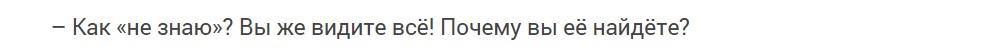 Так Я или МЫ? Сейчас я мы должны решить...В шестнадцатой главе Фео спрашивает почему он ее найдет? Наверное он имел ввиду: "вы ее НЕ найдете".