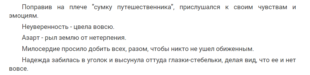 Язык и стилистика. Стиль у автора очень специфический. О нём можно говорить долго, но я лучше приведу несколько типичных примеров.