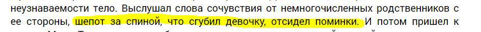 Прочитала дважды. Шептались о том, что сгубил девочку и отсидел поминки?