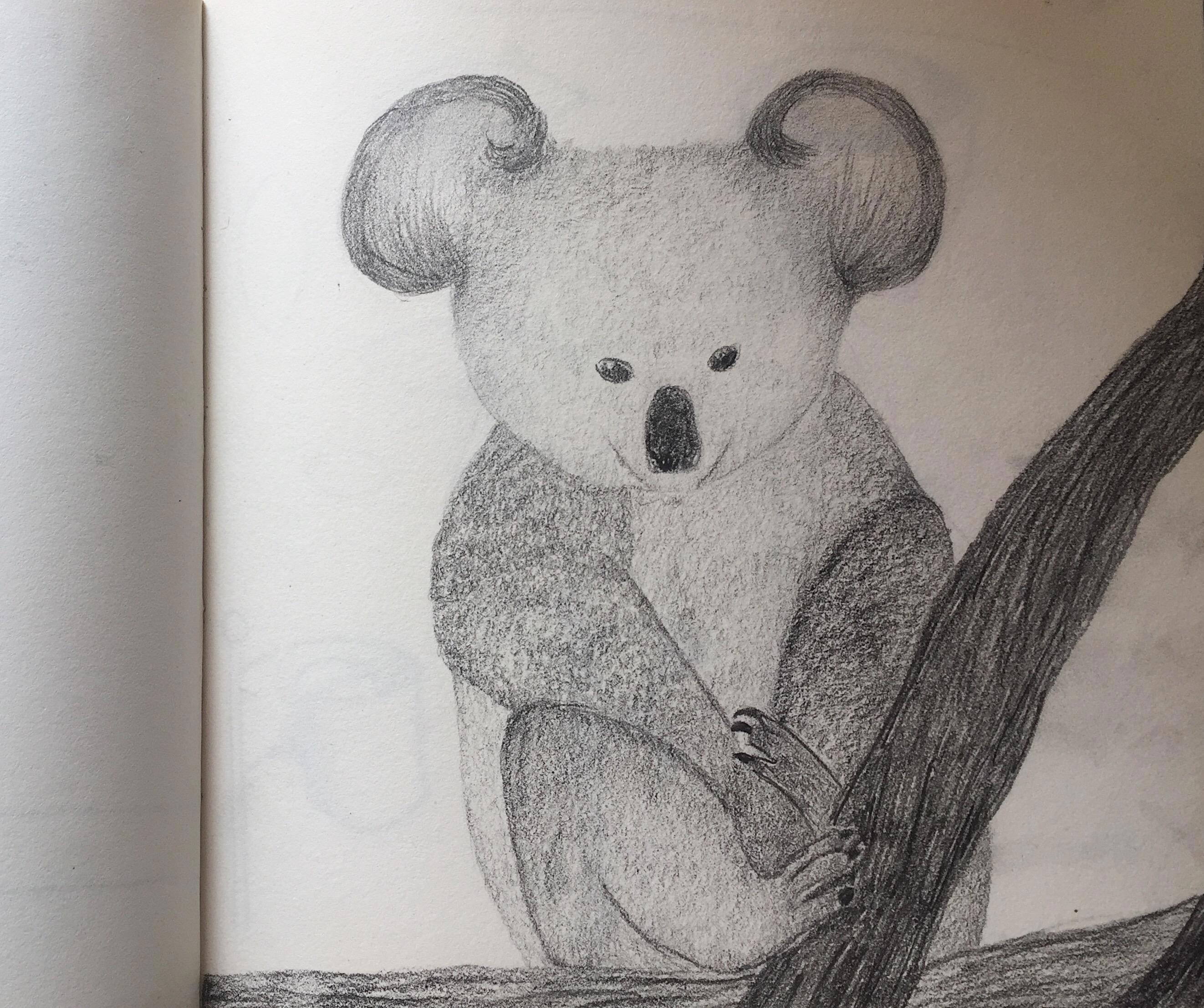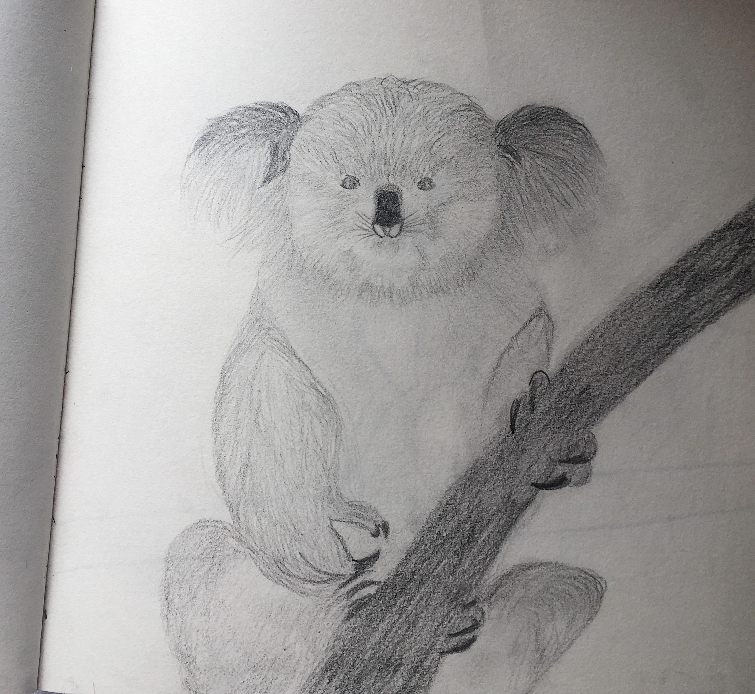 Но мы начнём с этой милой коалы, а дальше напишем буквами. Коала в подарок для Лены, не вполне профессиональная, но вполне добрая и упитанная.