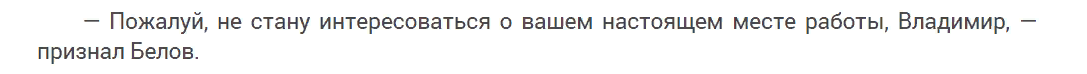 3. Неудачный приём введения информации. Этот эпизод мы видим глазами Владимира. Для чего он сам себе сообщает, как зовут его шефа?