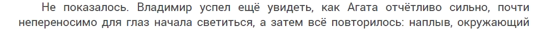 Конфликт между силами добра и зла разруливается в лучших традициях жанра: здесь есть и вотэтоповороты, и просто интересные (хотя иногда и чересчур сложные, на мой взгляд) детали типа магических виграфов. Что касается любовной линии, в первой половине романа ей получается верить почти безоговорочно, чего нельзя сказать о второй. Бесконечно повторяющиеся попытки сближения со стороны Агафьи и совершенно одинаковая каждый раз реакция на это Владимира реально утомляют.