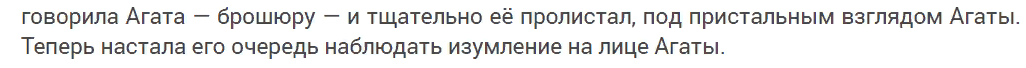 Сюжет увлекателен, но в середине, на мой взгляд, немного провисает: там чересчур много бытовых сцен, не связанных с развитием действия. Почти вся линия с Натальей кажется лишней, её увлечение так и остаётся "невыстрелившим ружьём". "Рояль" тоже имеется - трудно поверить в роковое совпадение: Агату убивают именно тогда, когда ей грозит опасность совсем с другой стороны.