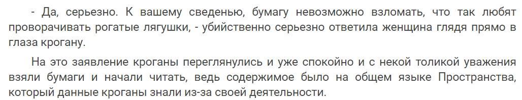 Но наш герой скромняга, поэтому ограничился только несколькими именами и прозвищами. Если вы не знаете, откуда они, то не беда, я вам скажу: из Звездных Войн. И уверяю, не стоит переживать насчет своего незнания, не нужно гуглить, кто это все такие, если конечно, самому не интересно. Это просто пафосные слова, за которыми нет ничего, так как к вышеназванным именам этот персонаж имеет примерно такое же отношение, как школьник, подписавшийся в какой-то игрульке именем любимого героя из анимешки к этому самому герою. То есть – никакого. Ну кроме того что ГГ изредка изрыгает на читателя куски пафоса.