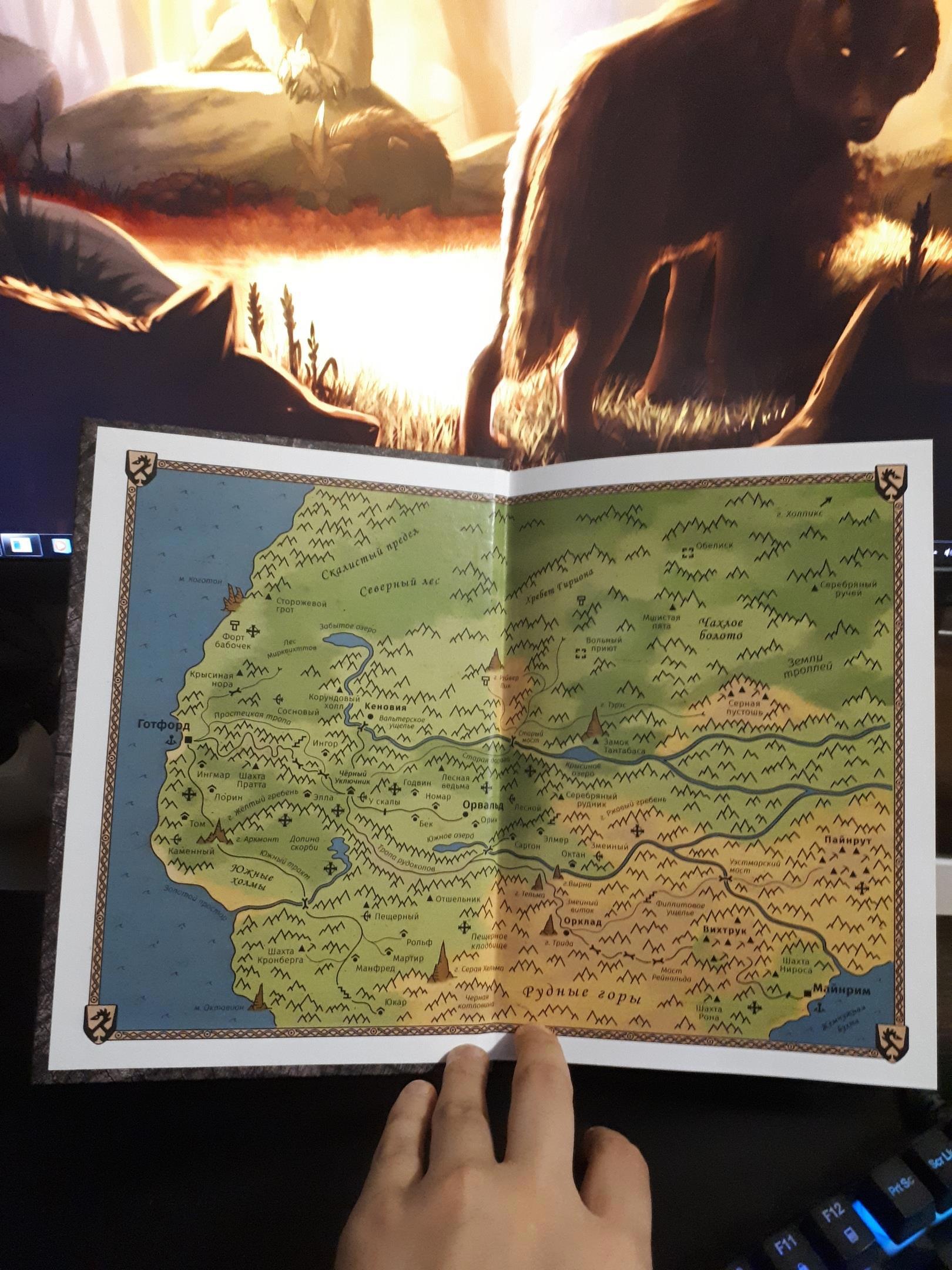Сама книга имеет на удивление качественную печать, жесткие страницы и твёрдую обложку. Красивое оформление каждой главы, а внутри подробная карта земель, так что запутаться в географии сложно. У меня возникли трудности только с названиями животных, растений и некоторыми именами, но в целом не критично если делать себе небольшие пометки.