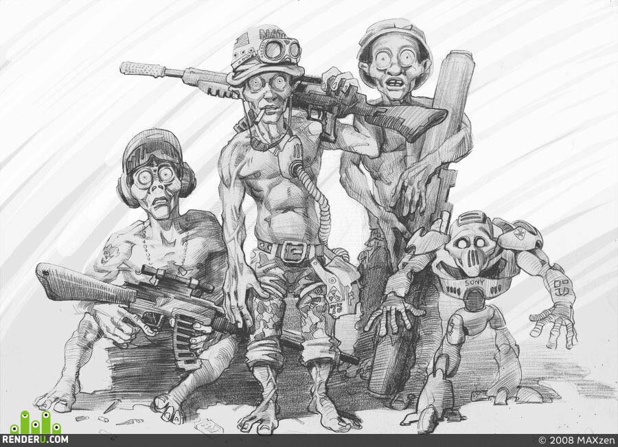 Мои варианты альтернативной концовки, раз (слева).  Я надеялся, что у студентов все получится... И два (справа). Герой конечно нагибатор, но мир ему достался полное говно...