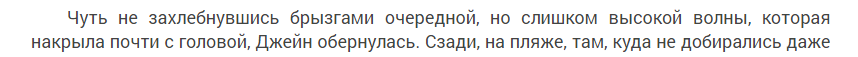 Но в целом текст весьма ненавязчив,  действительно легко читается, хотя порой это приводит к некоторой заниженной значимости, при которой можно пропускать предложения и даже абзацы и при этом не терять нить повествования и поведения персонажей.