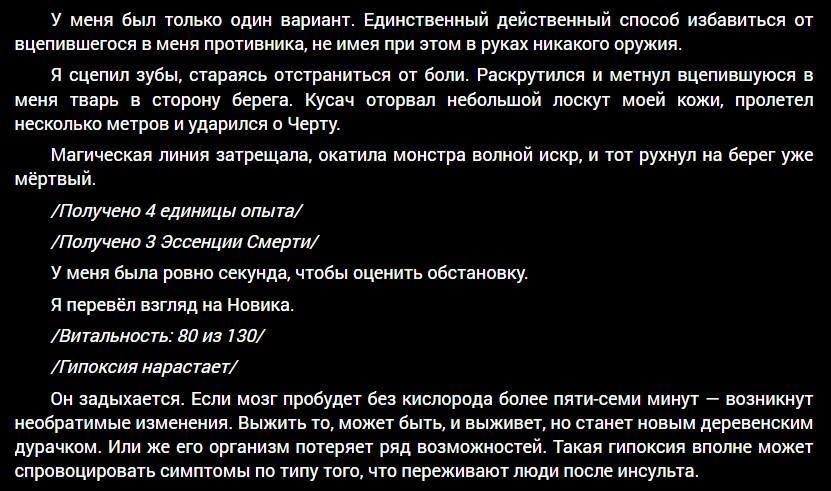 Что тоже само по себе норм, но станет ещё одним камушком на весы удовлетворения от текста. Ибо ни что так не ломает восприятие как обманутые ожидания. И в свете этих замечаний хотел бы обратить внимание на главное разочарование книги, а именно систему эссенций. То, что могло бы стать фишечкой, стало... пшиком!