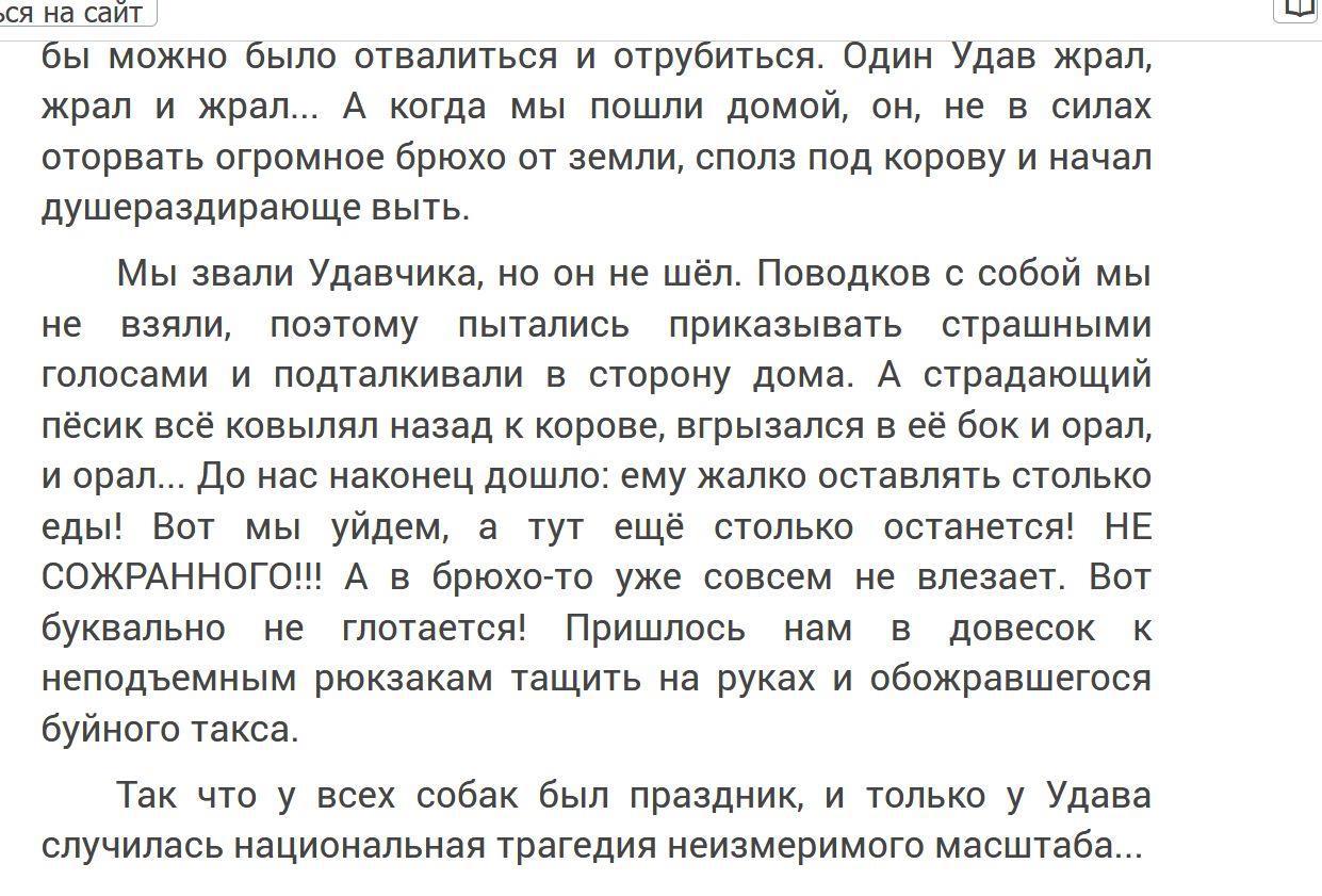 Я как раз дочитал рассказ про такса Удава и корову, как он не смог её всю сожрать. И хохочу. И на этой смешной ноте кончаю писать рецензию. А вот скрин про Удавчика: