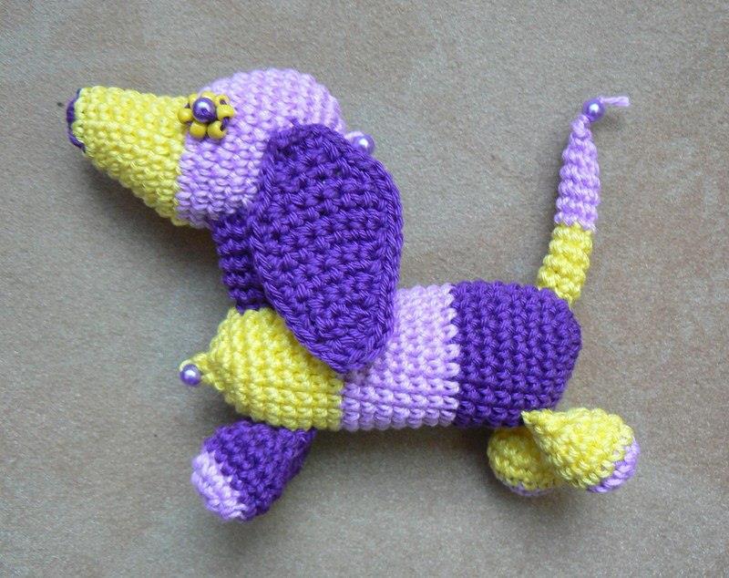 Вначале текста: вязаный такс, работа Марики