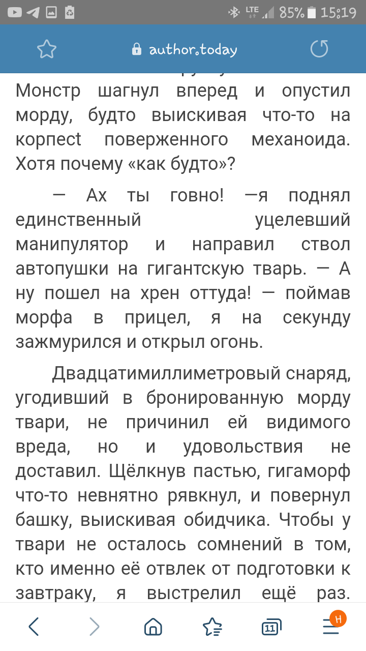 Глава 20. Абзац про винтовку Марго. Верхняя строчка на скрине. Внезапно "... Алтай впервые столкнулся с эти тварями..." Это намеренный переход на вид от 3го лица или косяк?