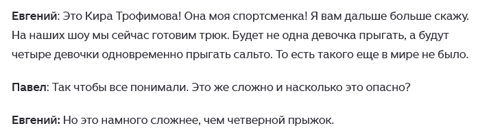 Кажется от Сотки уже мало что остается. Неуверенная какая-то, стеснительная... С ее опытом и достижениями фигуристы 80-х натуральными динозаврами должны смотреться. Что у той же Соколовской было? 3+2 кое-как прыгала да на двух ногах каталась. Сотка же как понимаю топовая квадистка с каскадами на два порядка выше типа 4лутц+3тулуп, дорожки 4 уровня, вращения так же. Да, тело другое, условия хуже, но характер там стальной должен быть. Загитова, Щербакова, да и Сотникова, это же девочки-бульдозеры. Или бультерьеры ) Одна Сотка на таком уровне припевочкой осталась?