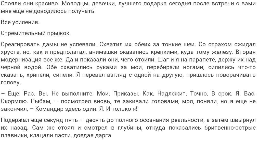 Количество "мля" в последних главах избыточно, пытки, фото пленников с голым задом и т.д. думаю это не тот гг, который был ранее. Дизлайк.