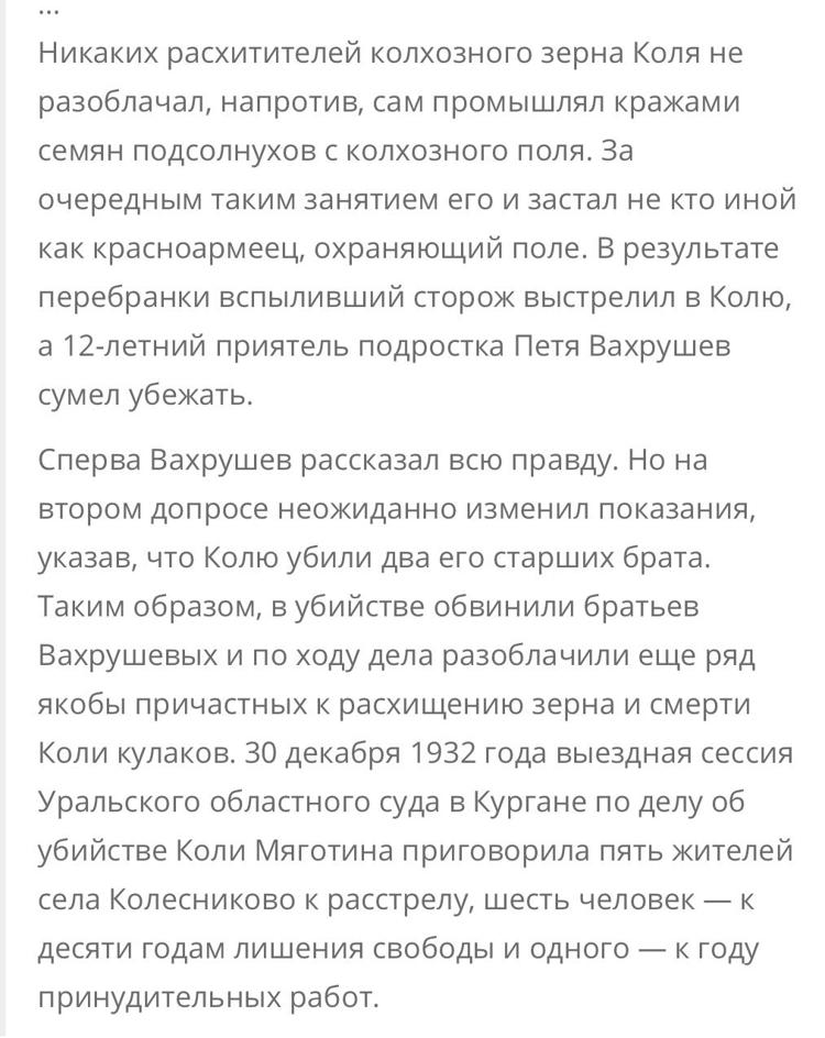 В городе Кургане, Курганской области есть улица Коли Мяготина, если Павлик сдал семью, то Коля сдал всю деревню…