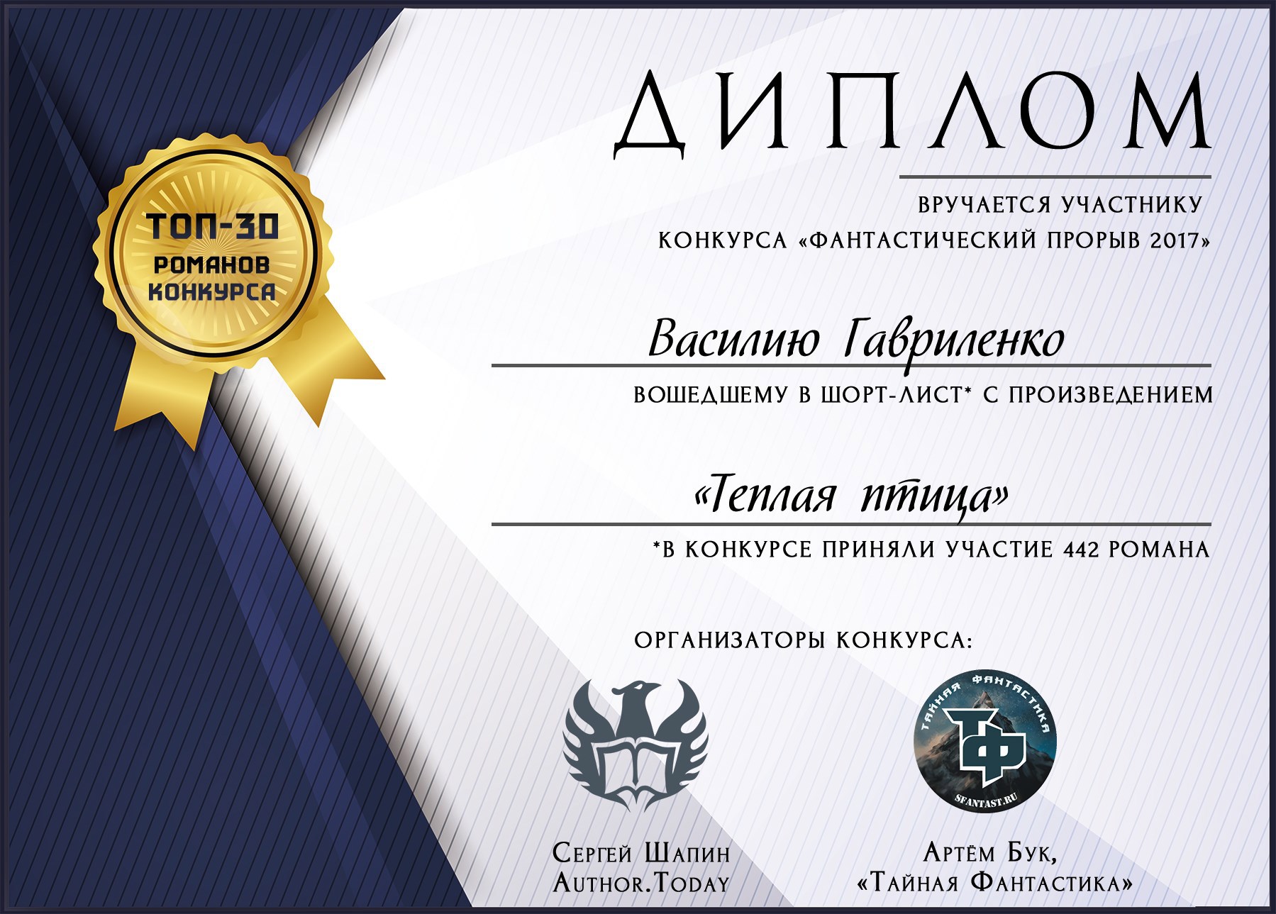 Выдается всем участникам конкурса романов «Фантастический прорыв 2017»