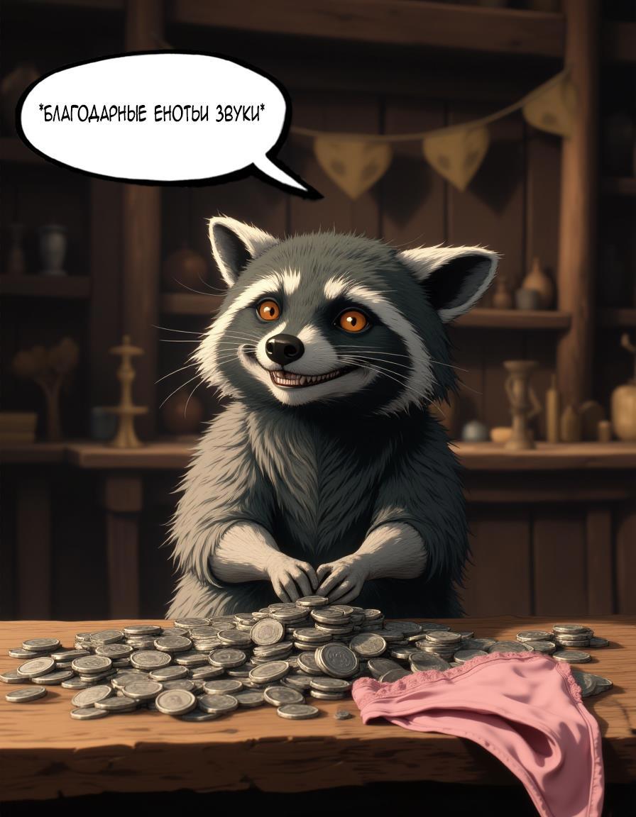 2. "И Енот не огребся...ни капли, даже не обмочился от страха в тупо проспал весь момент..; Ни Зефир особо то не сделал ничего, просто фыркнув; Да и сами Дамы, после охоты и пылая праведным так легко отступили и отпустили косячников... Показалось именно "Замах на рубль, а удар на копейку"... Да верил что хоть шерсть подпалят или бубенчики чуть не отрежут, чтоб сказалось на персонаже как-то=)"